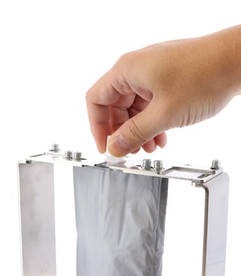 測定はトルクゲージを使用して行われますが、スパウトパウチの開栓トルク測定の難しさは袋部が軟らかく変形しやすい点にあります。そのため測定を行うには、袋部を避けてスパウト部を固定できるような治具が求められます。